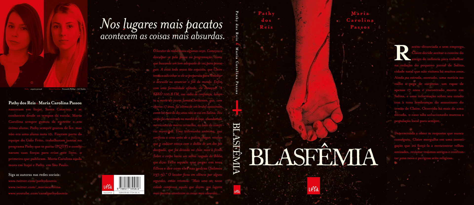 Book cover: "Blasfêmia", Pathy dos Reis & Maria Carolina Passos. Publisher: LeYa, Brazil, 2015. Capa de livro: "Blasfêmia", Pathy dos Reis & Maria Carolina Passos. Editora: LeYa, Brasil, 2015.