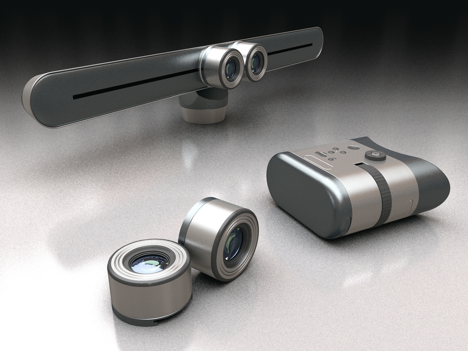 The pair of 'Modular Lenses' have built-in sensors, and can be attached to other devices in the system (the IR, the SVF or to the other products in development).