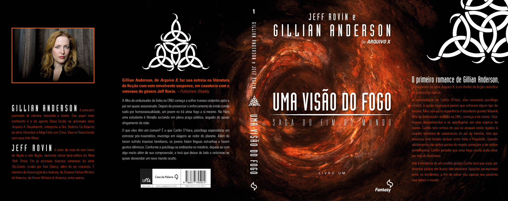 Book Cover: "A vision of fire (Earthend Saga #1)", Gillian Anderson & Jeff Rovin. Publisher: Fantasy - Casa da Palavra - LeYa, Brazil, 2014.